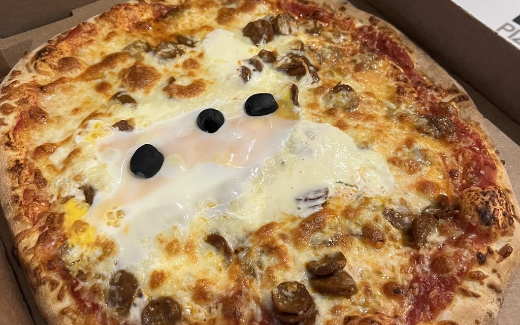 tomate, merguez, crème fraiche, fromage, œuf, olives